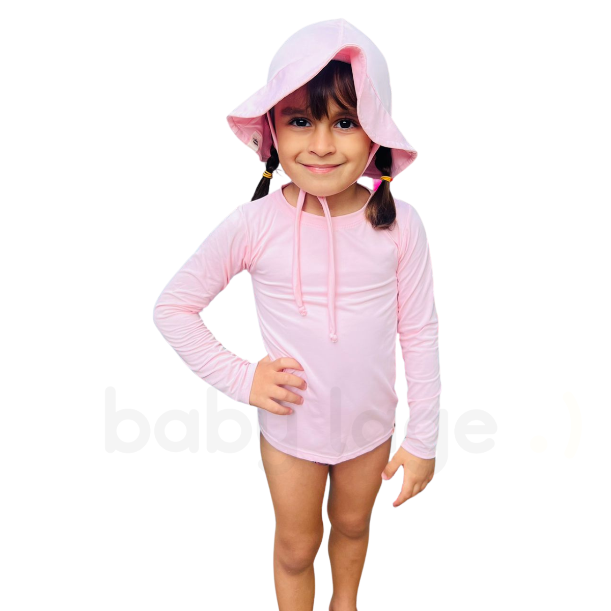 Kit Camiseta Manga Longa e Chapéu de praia piscina proteção uv infantil bebê (Rosa claro)